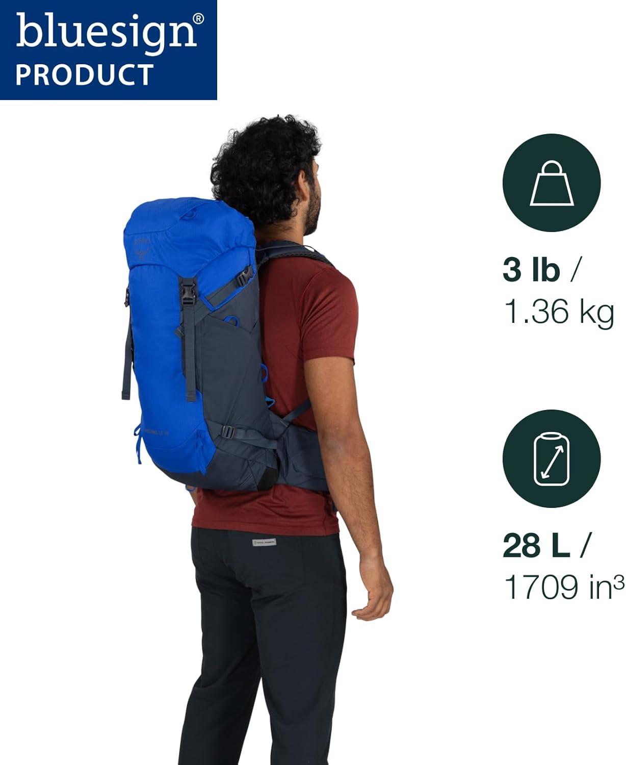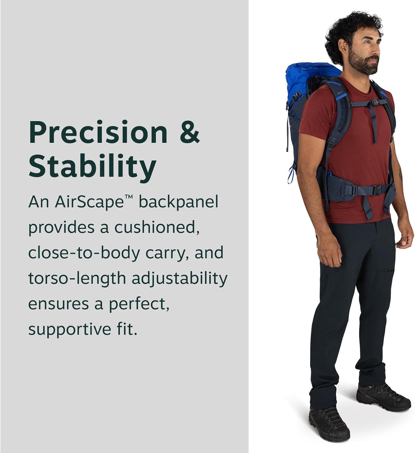Osprey Kestrel LT 45L Men’s Backpacking Backpack – Lightweight Hiking & Camping Bag with Waterproof Raincover, Black(Rays Blue)
