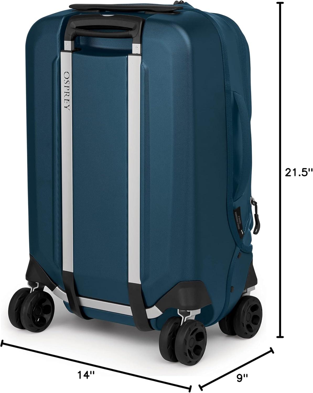 Osprey Transporter Hybrid Carry On Luggage, 4 Spinner Wheels, 22″/36L, Black(Venturi Blue)