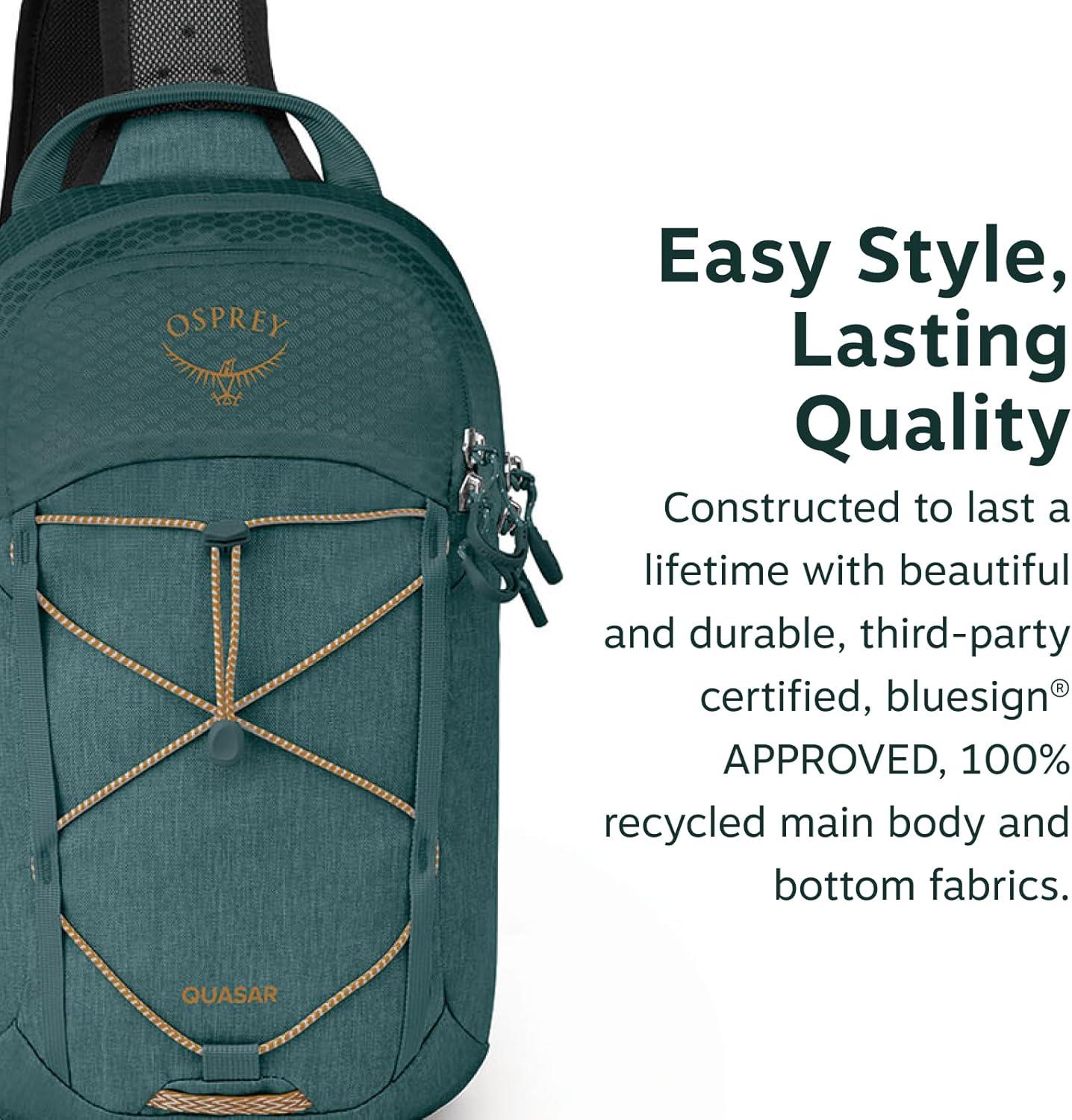 • Osprey Quasar Shoulder Sling Bag – Everyday Crossbody Backpack with Laptop Sleeve, Bottle Pocket, & Phone Pocket, Phantom Grey Heather(Torrent Blue Heather)