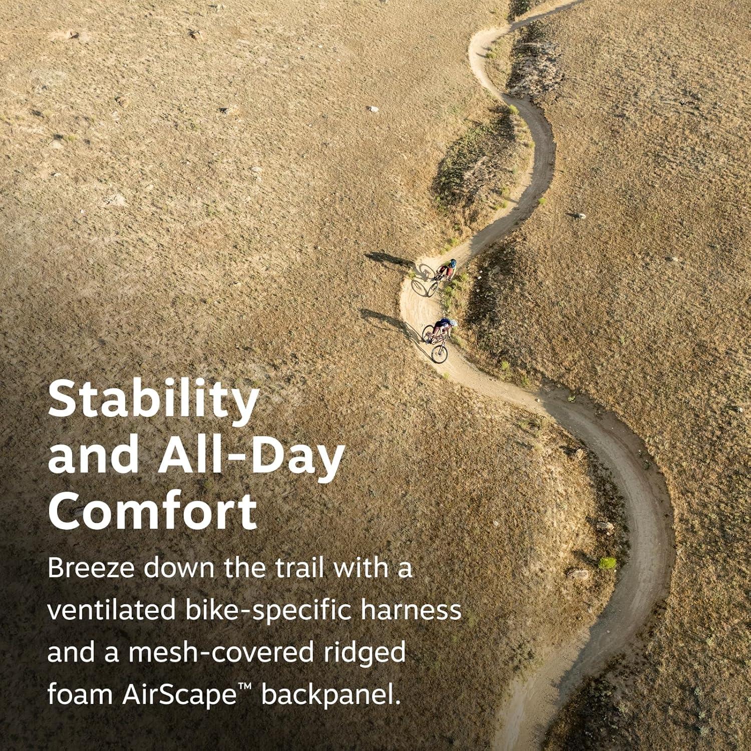 STABILITY & ALL-DAY COMFORT: Breeze down the trail with a ventilated bike-specific harness and a mesh-covered ridged foam AirScape Backpanel