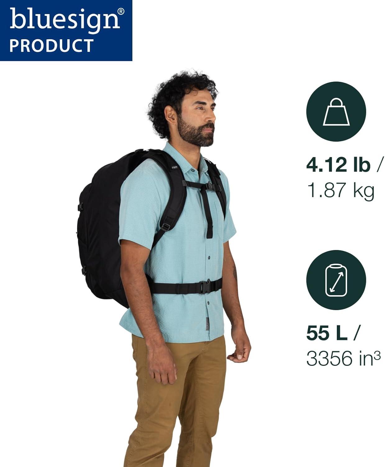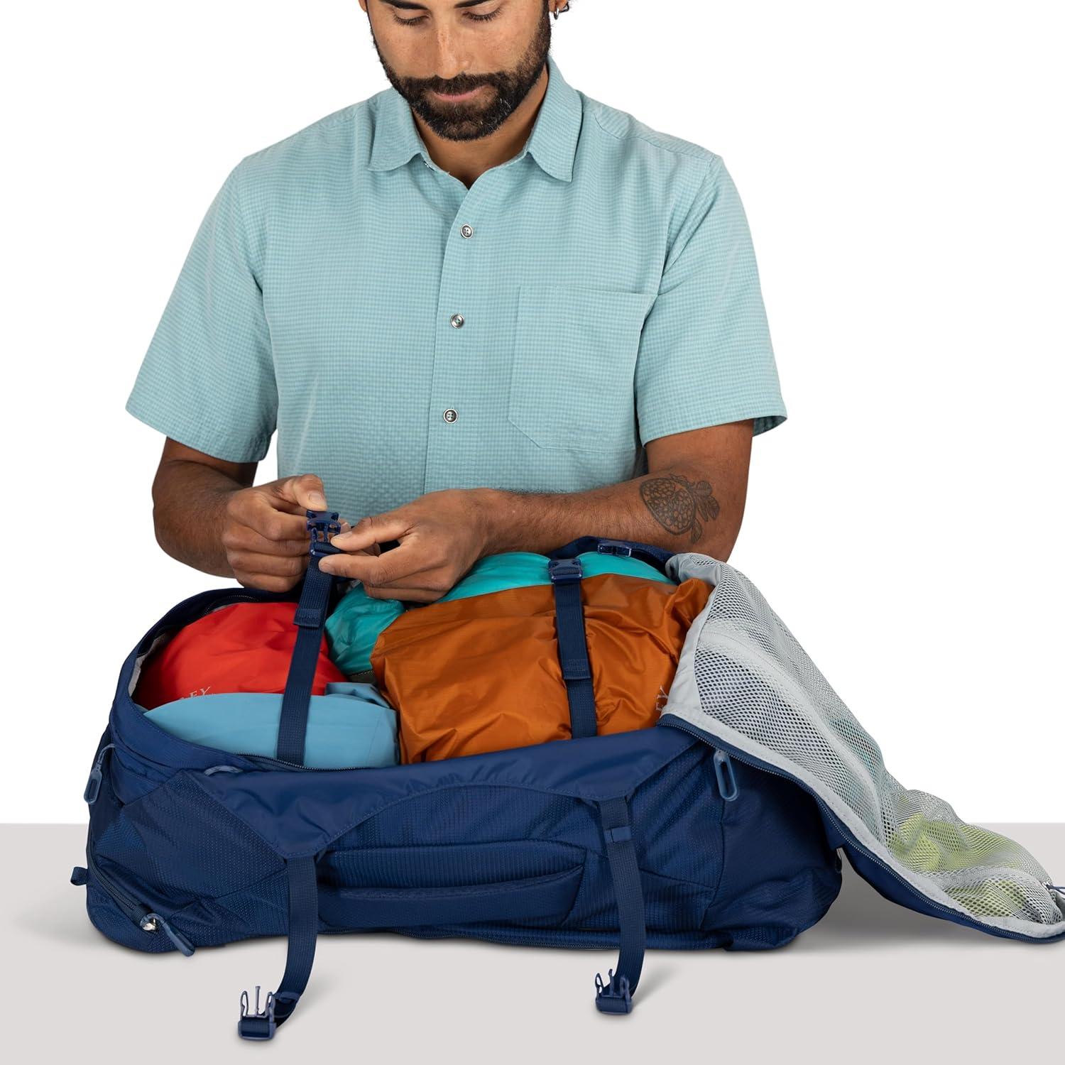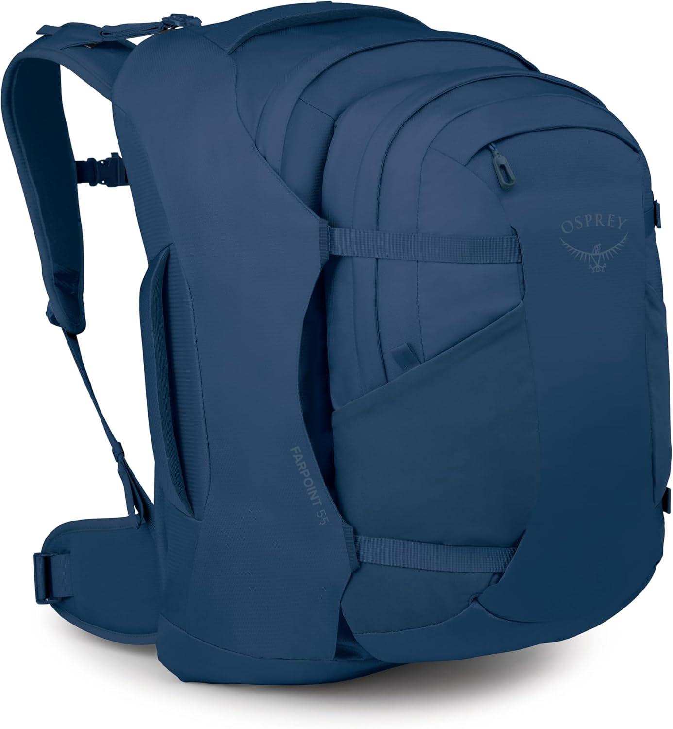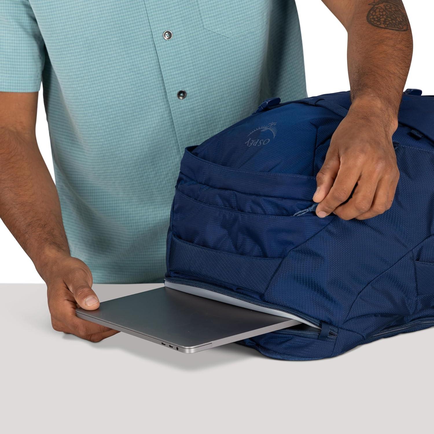 Osprey Farpoint 55L Men’s Travel Backpack – Carry On Bag with Personal Item Sized Detachable Daypack, Sawdust(Antique Blue)