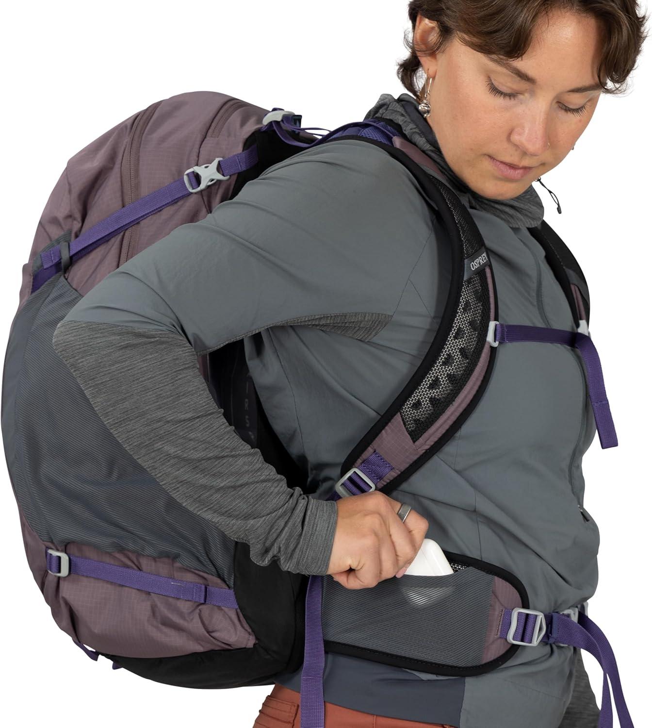 MOVE CONFIDENTLY: A padded, ergonomic harness with adjustable sternum strap and load lifters securely anchor and balance the load, while side compression and a hipbelt with padded hipwings ensure a supportive, stable carry