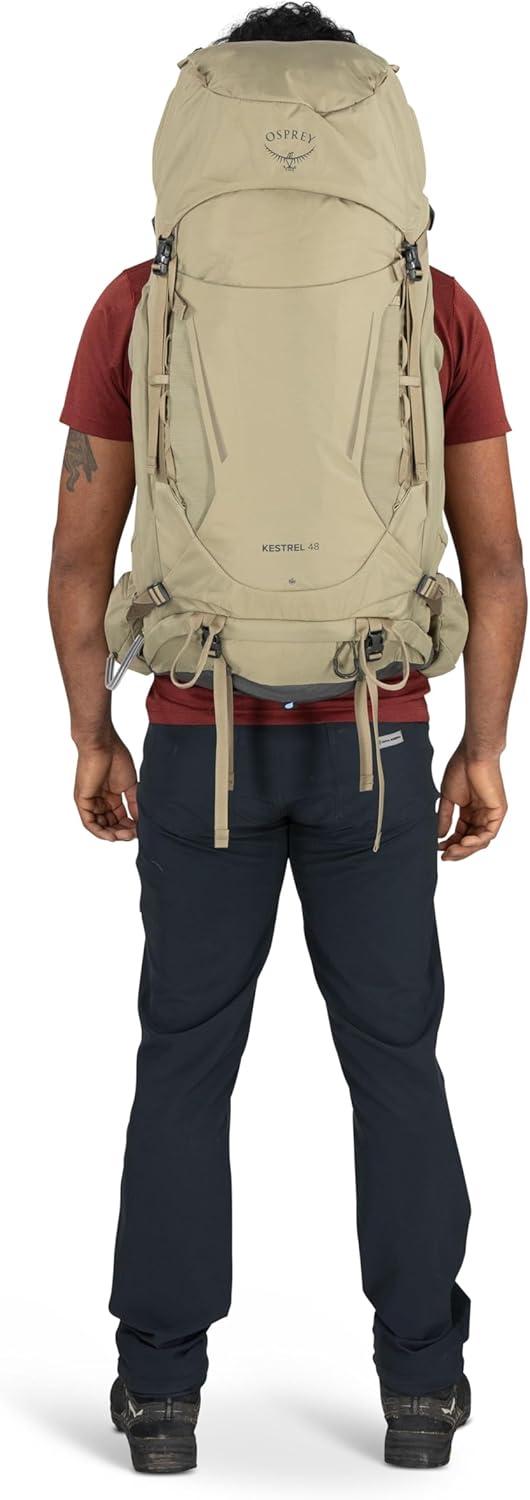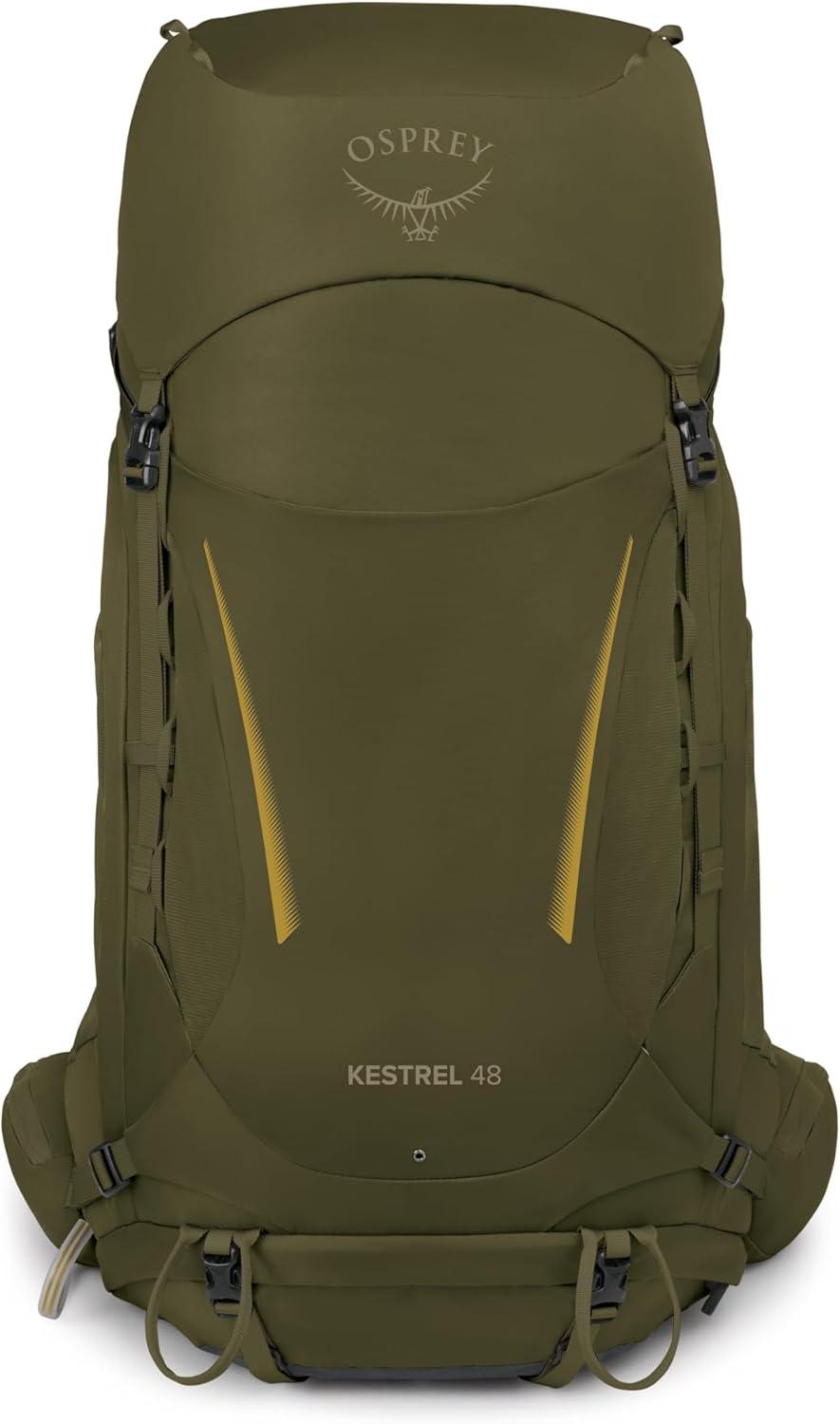 Osprey Kestrel 48L Men’s Backpacking Backpack – Hiking & Camping Bag with Waterproof Raincover, Olive Tan, Small/Medium(Moss Green)