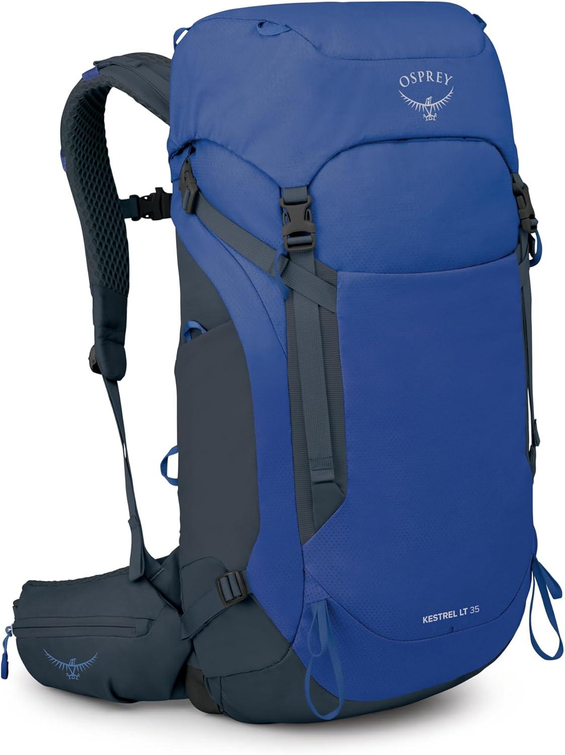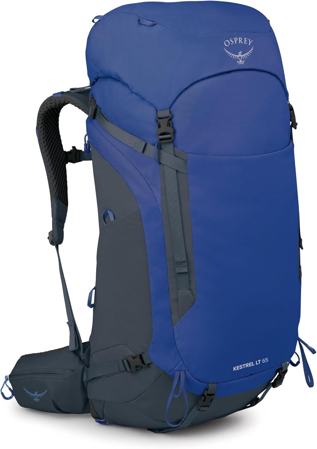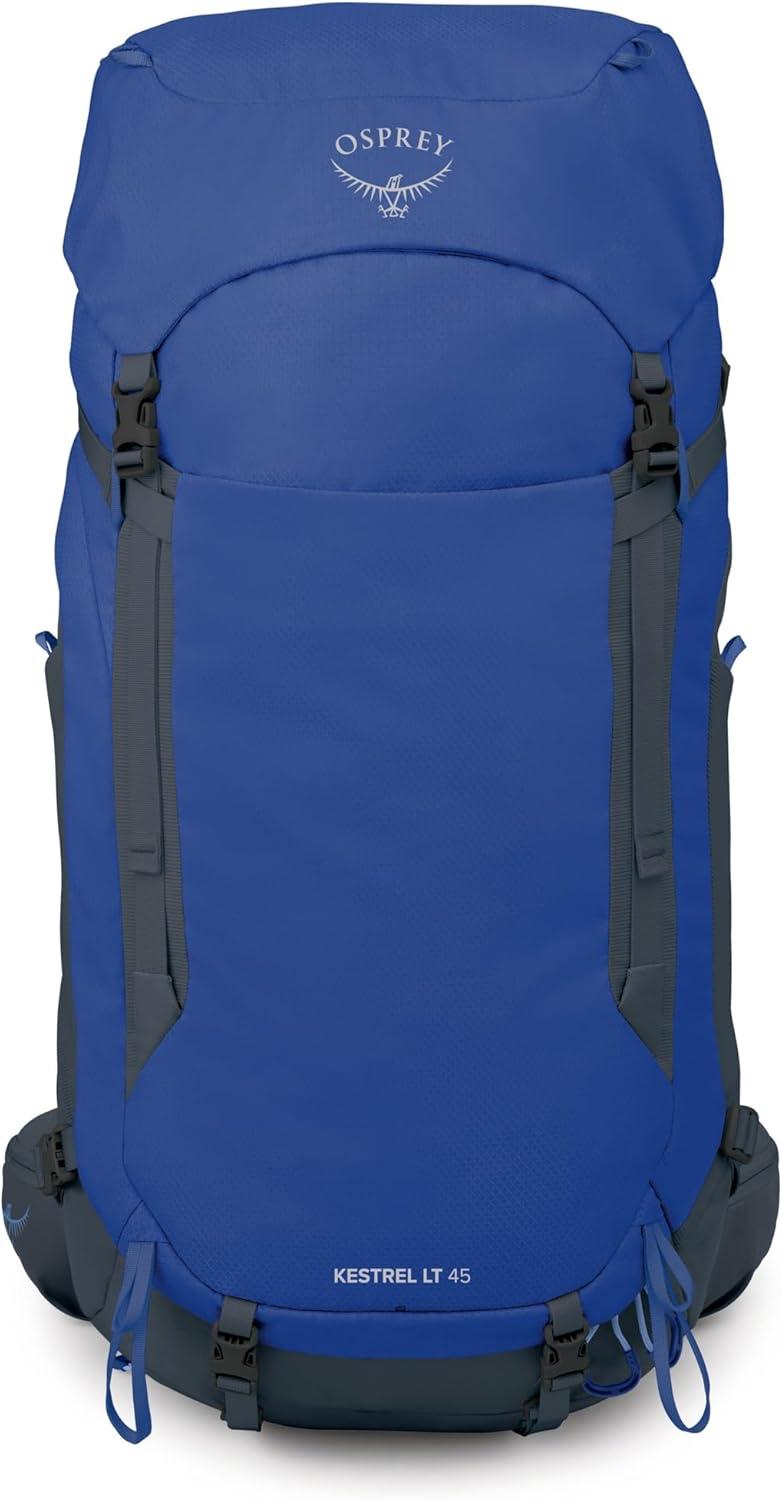 Osprey Kestrel LT 45L Men’s Backpacking Backpack – Lightweight Hiking & Camping Bag with Waterproof Raincover, Black(Rays Blue)
