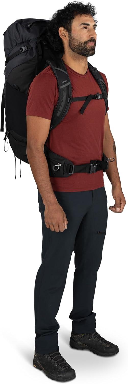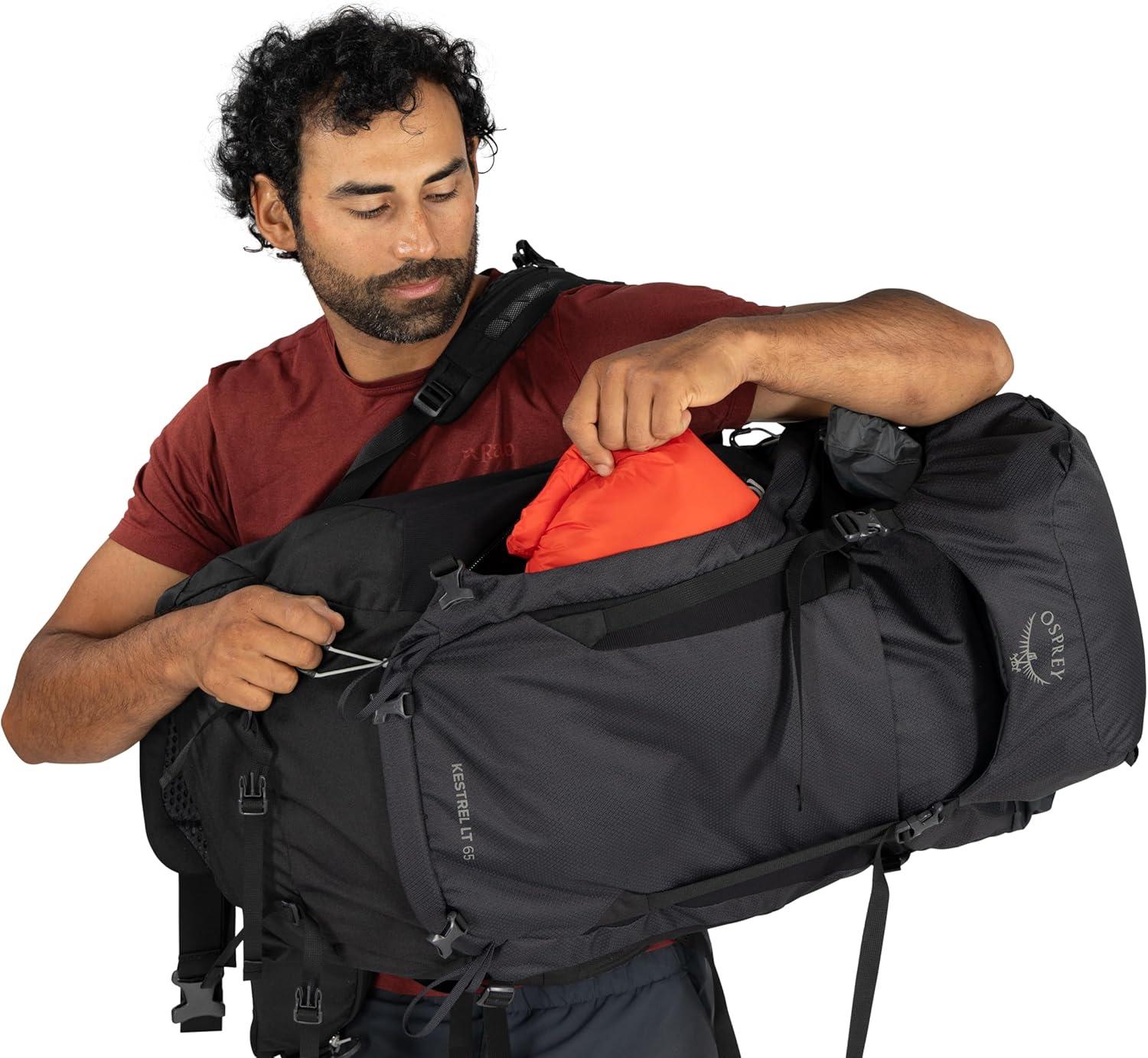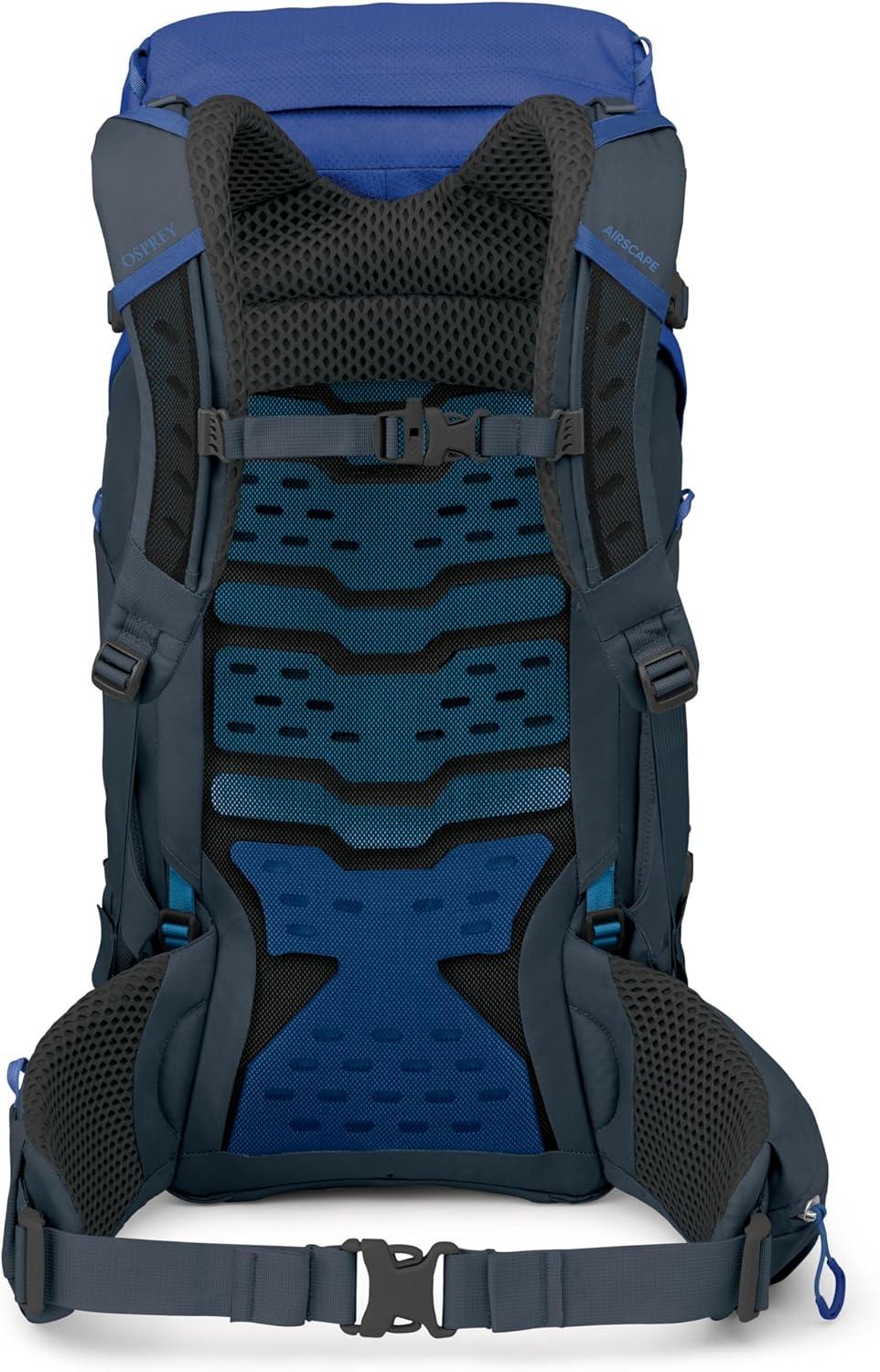 Osprey Kestrel LT 45L Men’s Backpacking Backpack – Lightweight Hiking & Camping Bag with Waterproof Raincover, Black(Rays Blue)