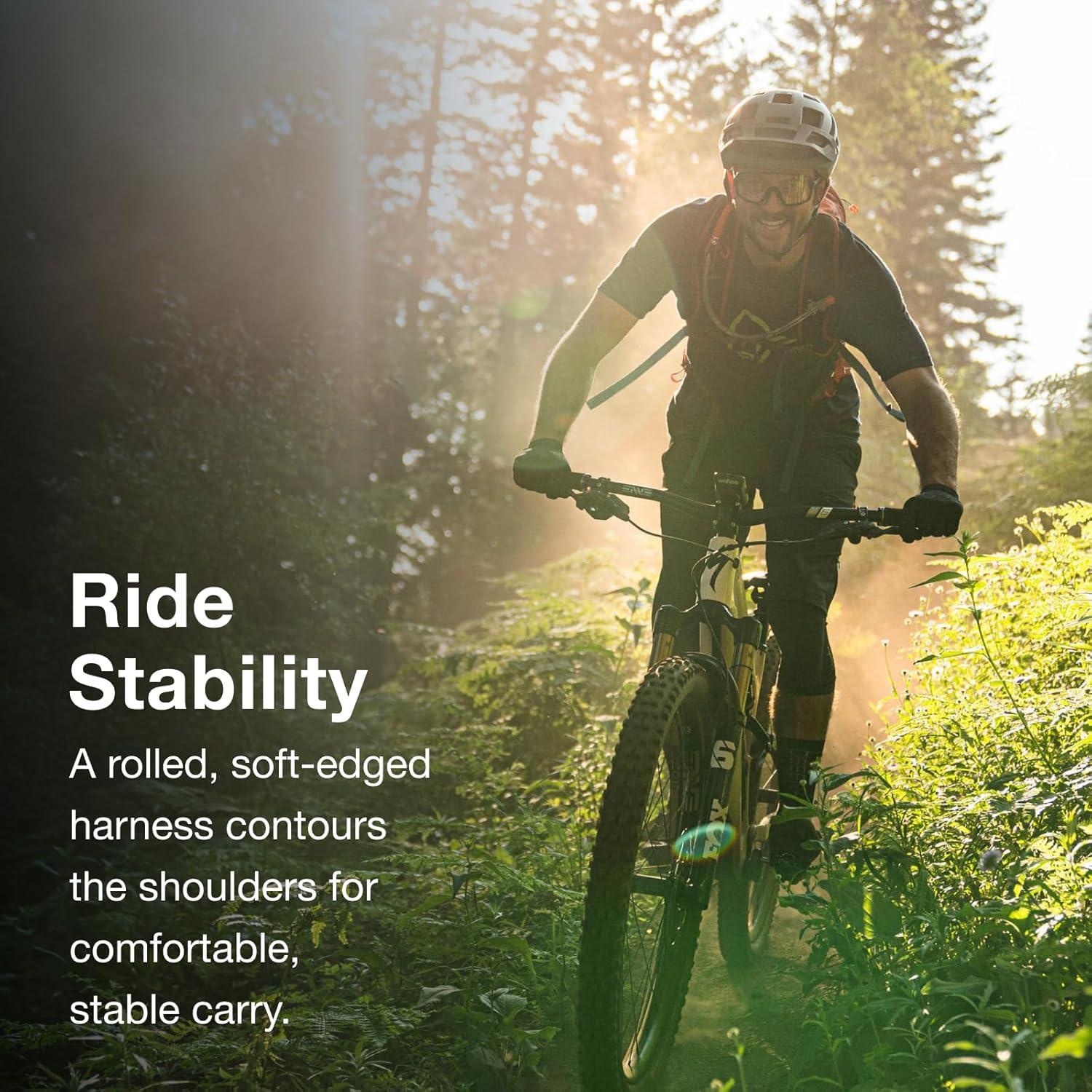 Ride Stability – A rolled, soft-edged harness contours the shoulders for comfortable, stable on-bike carry