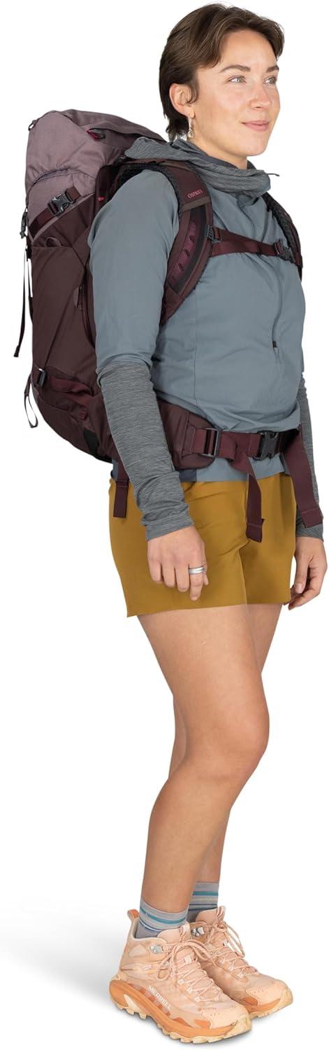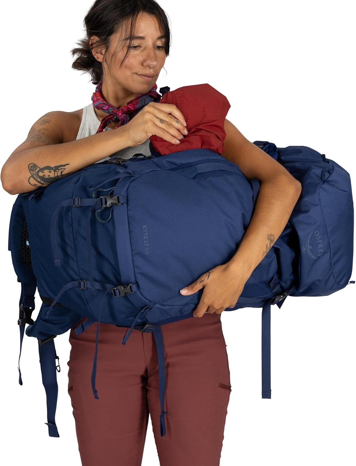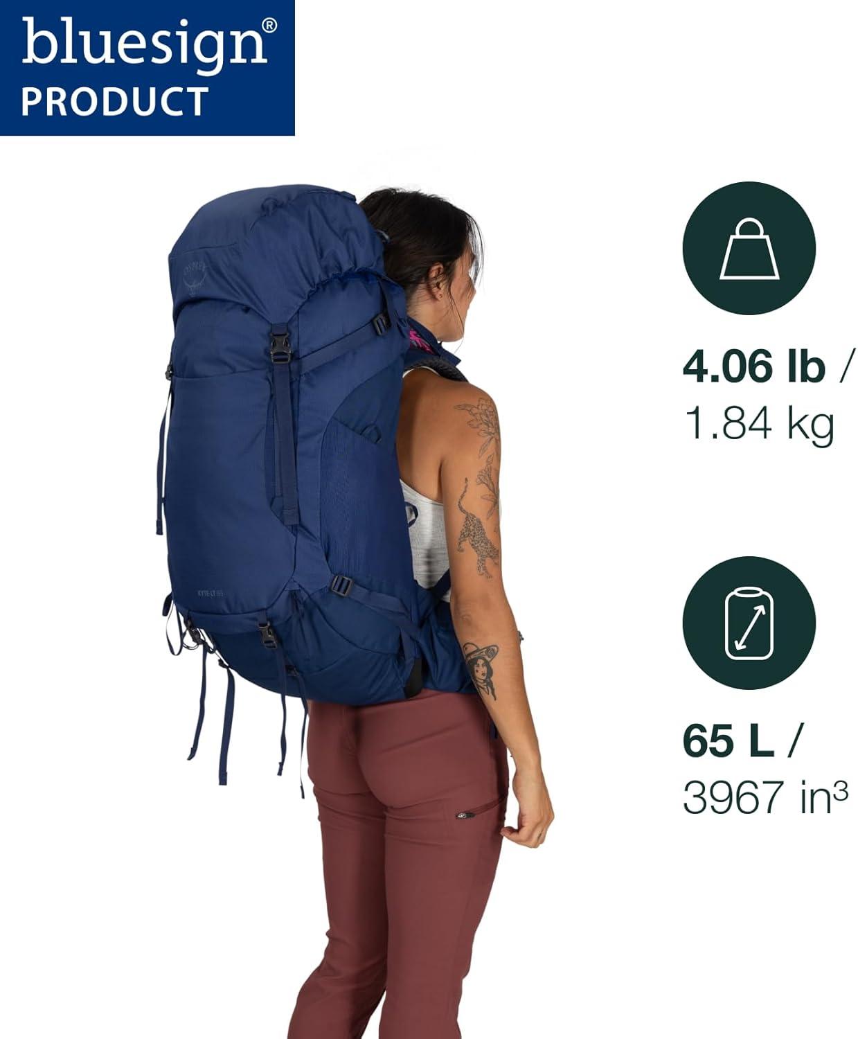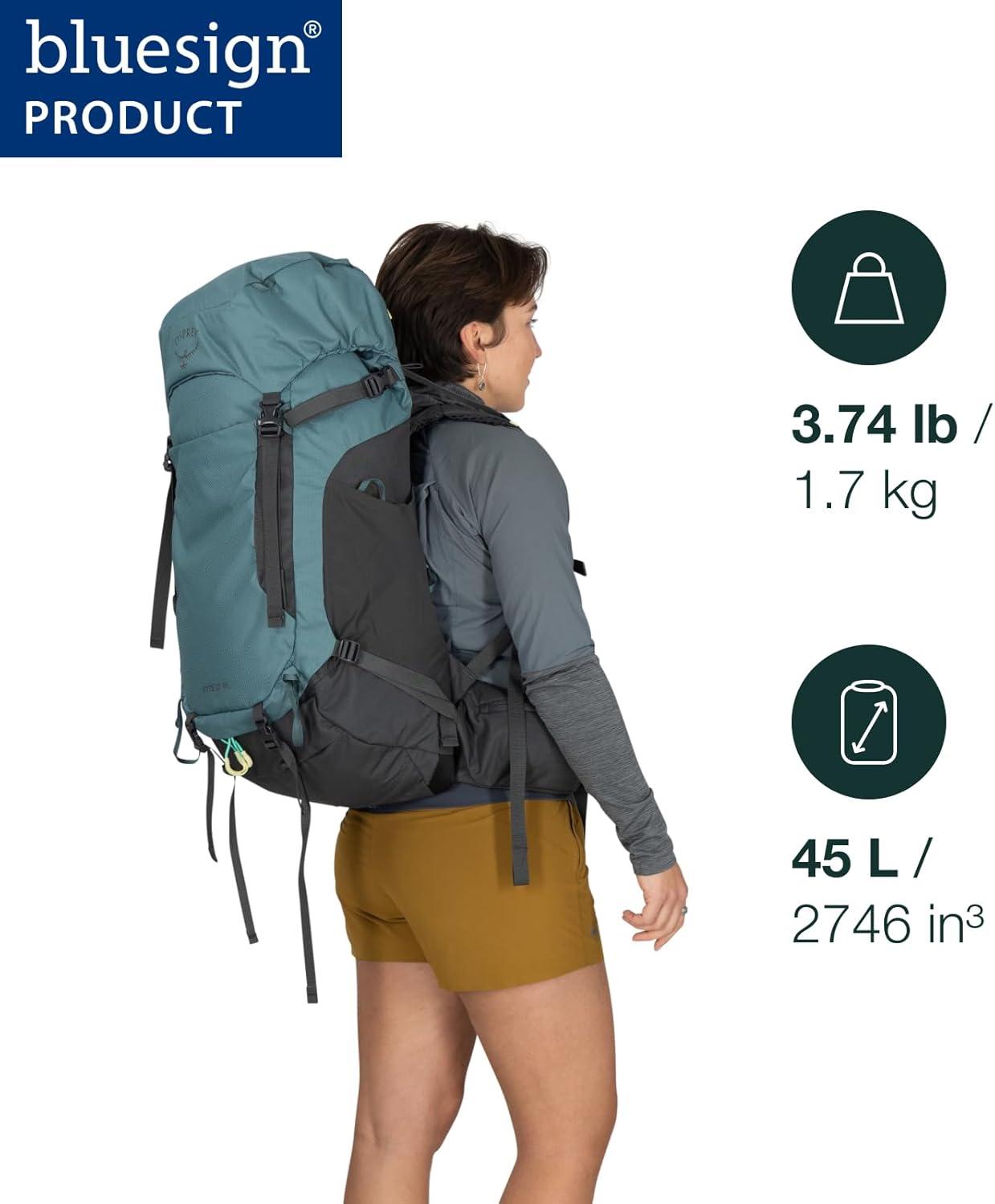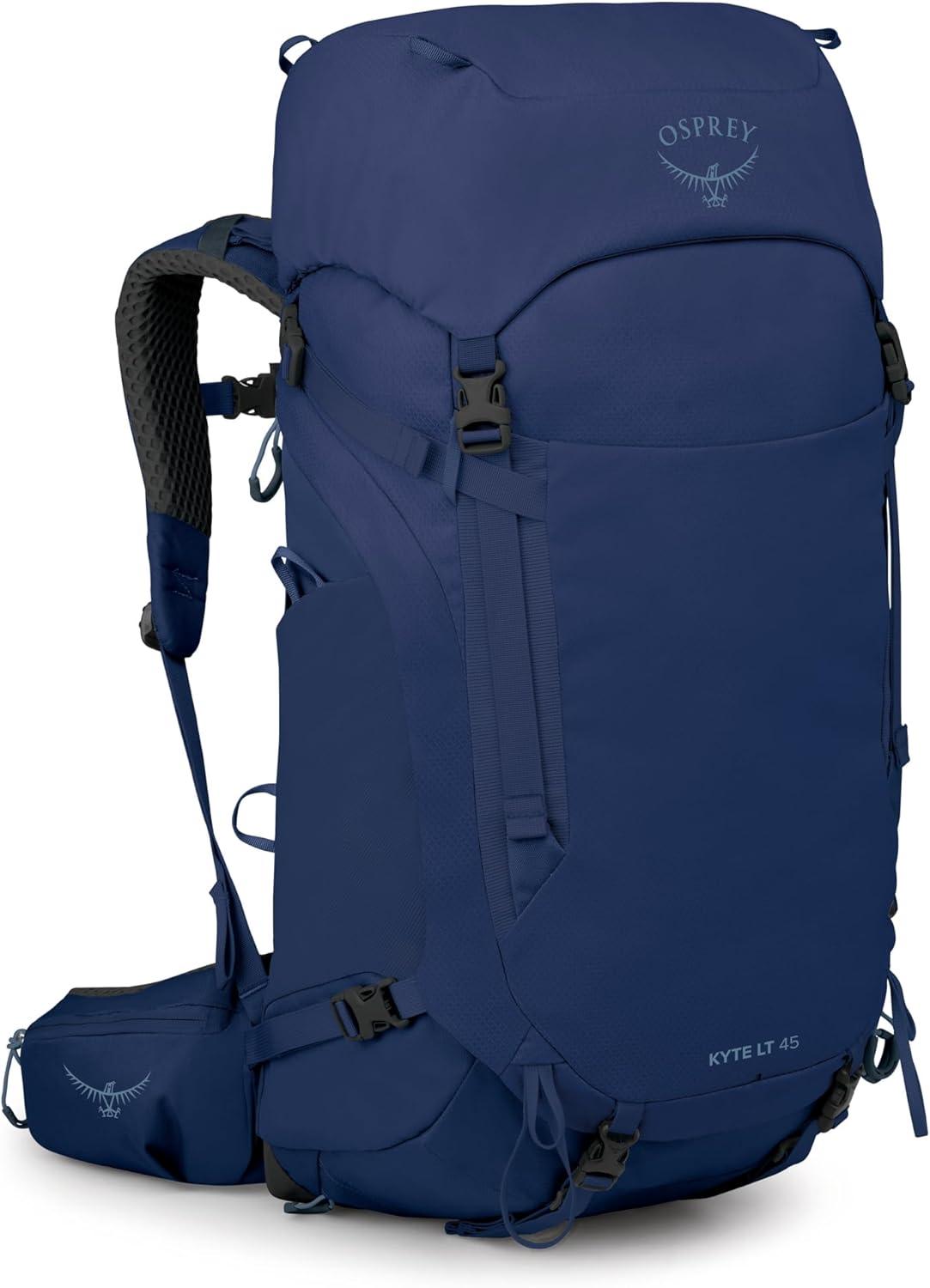 Osprey Kyte LT 45L Women’s Backpacking Backpack – Lightweight Hiking & Camping Bag with Waterproof Raincover, Graphite Purple(Serenity Blue)