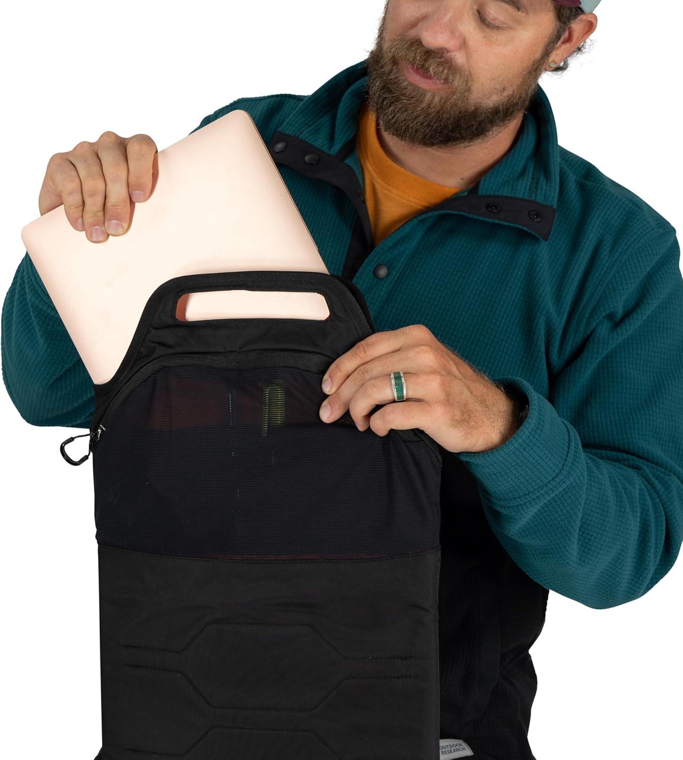 Magnetically secured, removable padded laptop sleeve with zip stretch mesh compartment, accommodates most 16-inch laptops