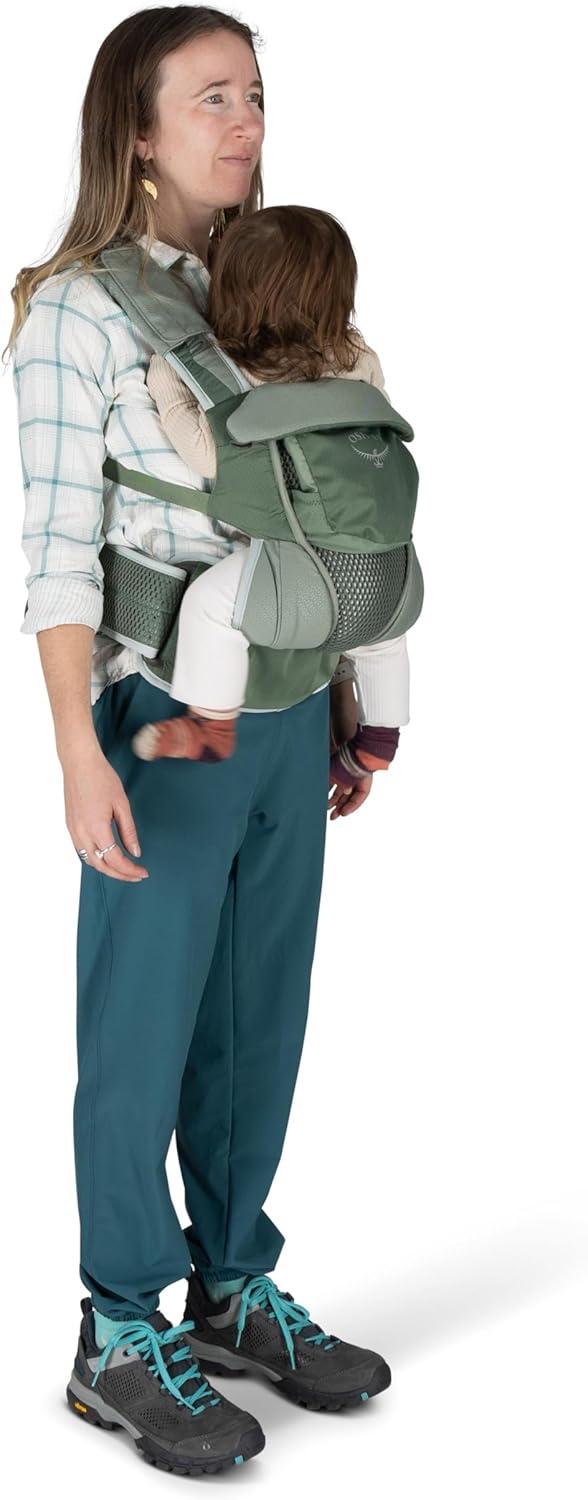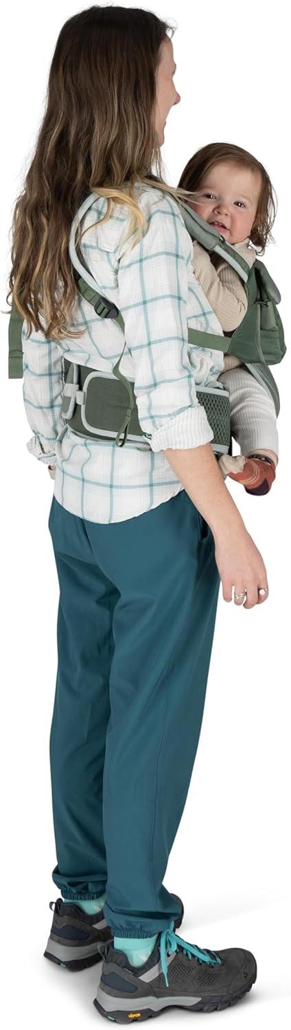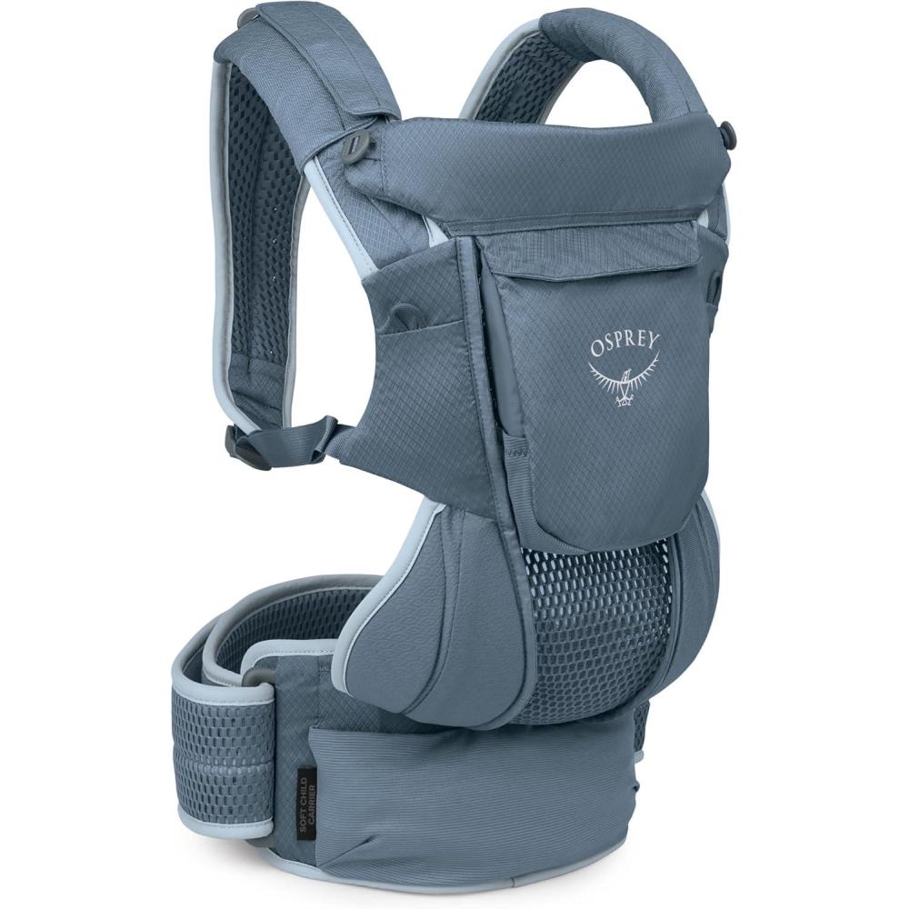 The Osprey Poco Soft Baby Carrier is an award-winning, soft carrier designed for parents who value hands-free comfort and safety while traveling with newborns, infants, and toddlers. With three ergonomic carry positions: face-in, forward-facing and back carry, it supports your child’s development up to 36 months. The breathable 3D mesh child seat, shoulder straps, and extra-wide padded hipbelt ensure a comfy, close-to-body fit. Ideal for travel, hiking, or everyday errands, it features smart storage for baby essentials, machine-washable fabrics, and a deployable UPF 50 sunshade for added protection. The fold-away padded headrest offers support for younger infants and tucks away as your child grows. A bluesign® PRODUCT, this infant and toddler carrier combines a sustainable design, durability, and performance, making it a must-have for active families.
