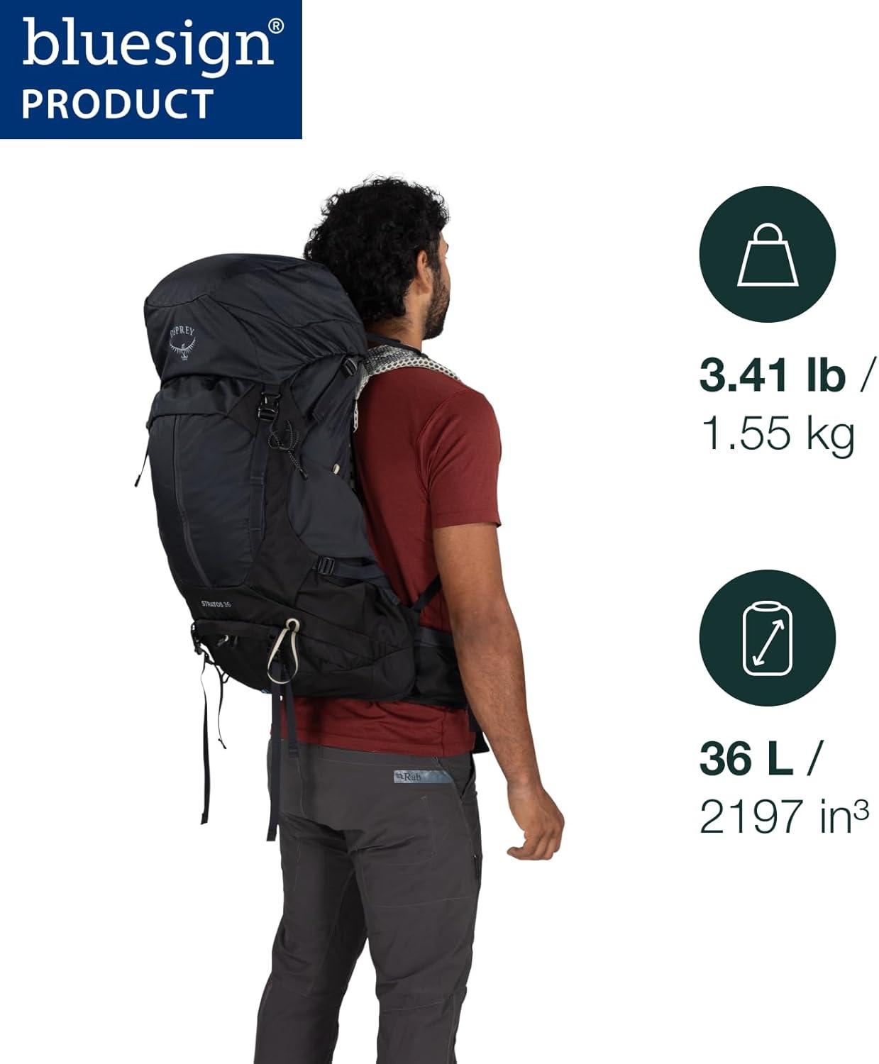 Osprey Stratos 36L Men’s Hiking Backpack – Lightweight Backpacking Pack with Waterproof Raincover – Camping Bag, Nirvana Blue(Raven Black)