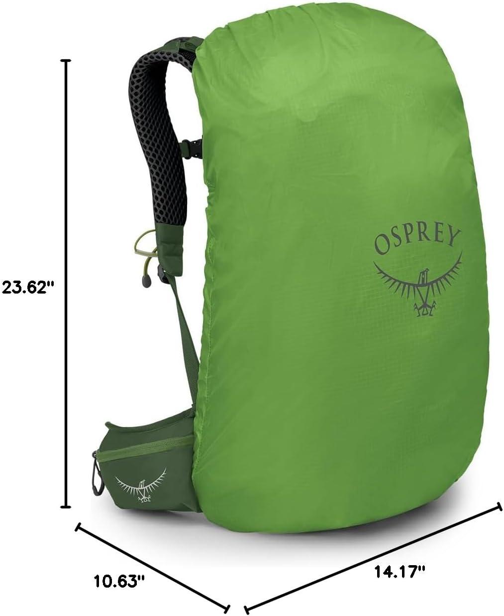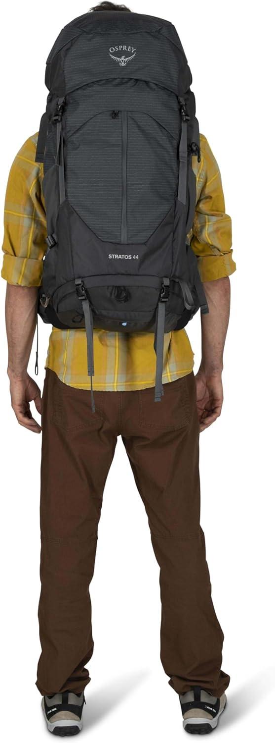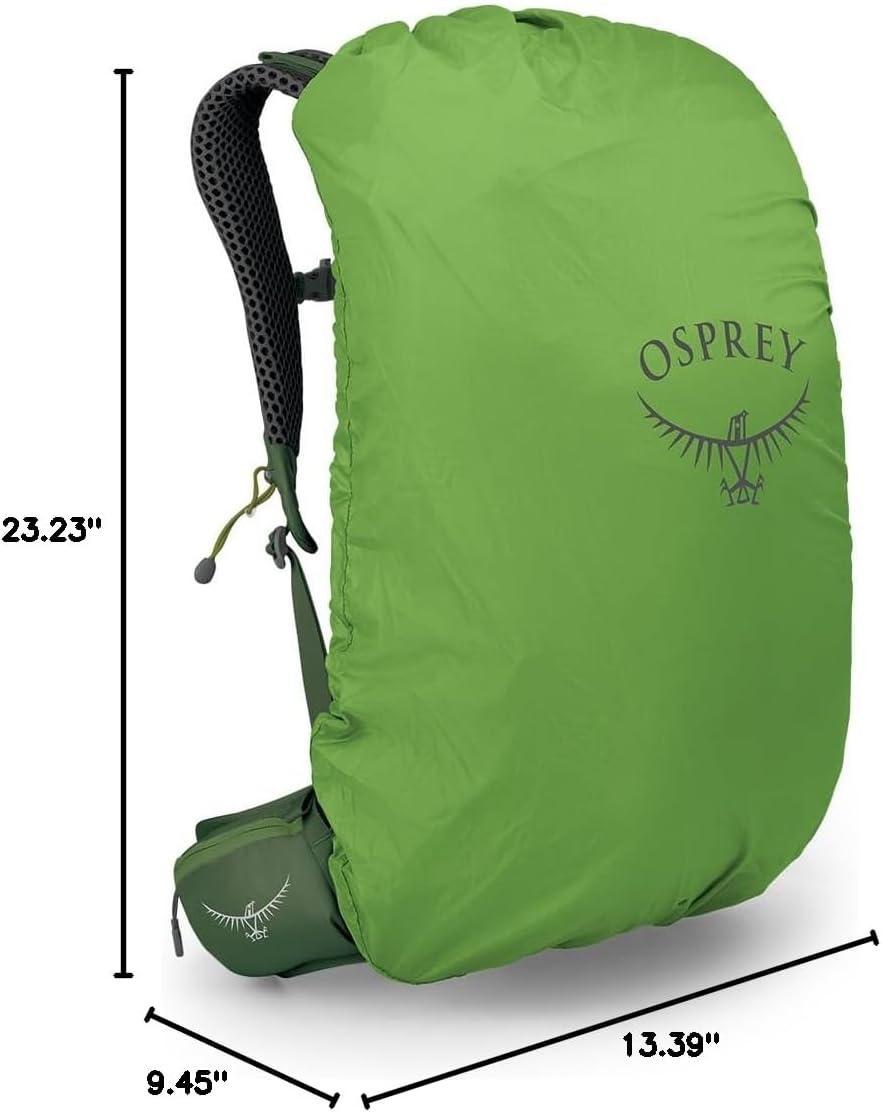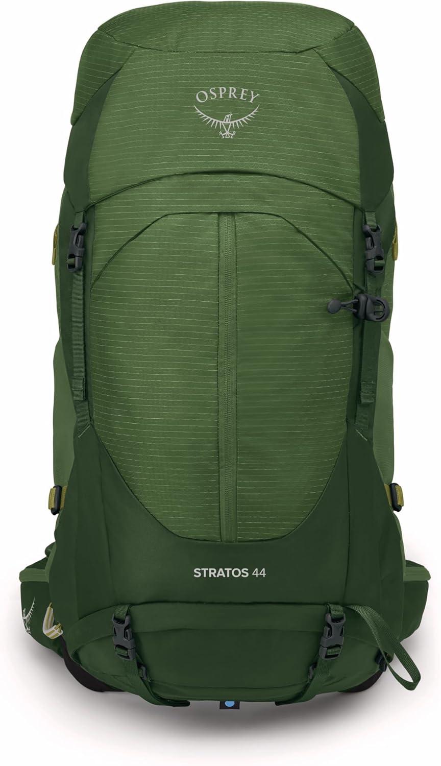 Osprey Stratos 44L Men’s Hiking Backpack – Lightweight Backpacking Pack with Waterproof Raincover – Camping Bag, Raven Black(Seaweed/Matcha Green)