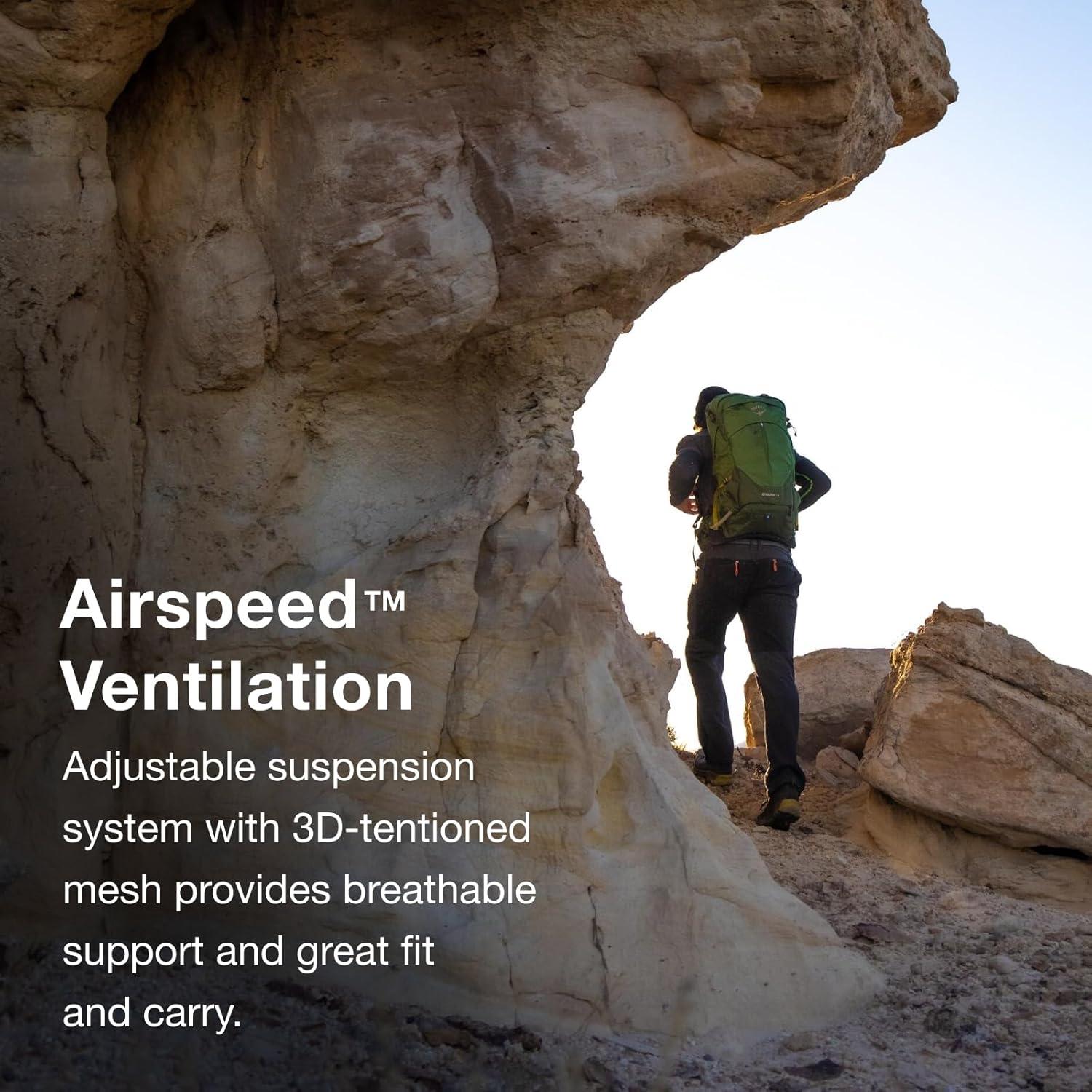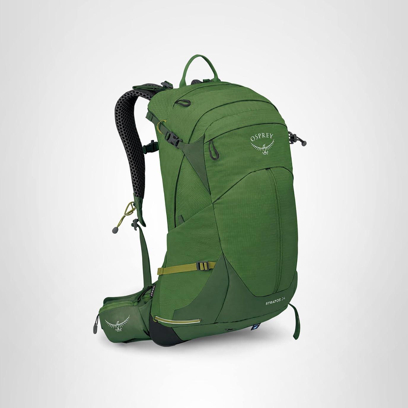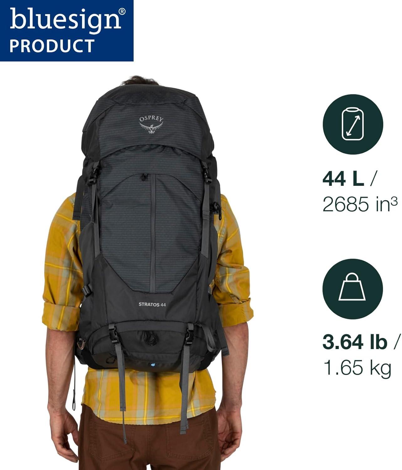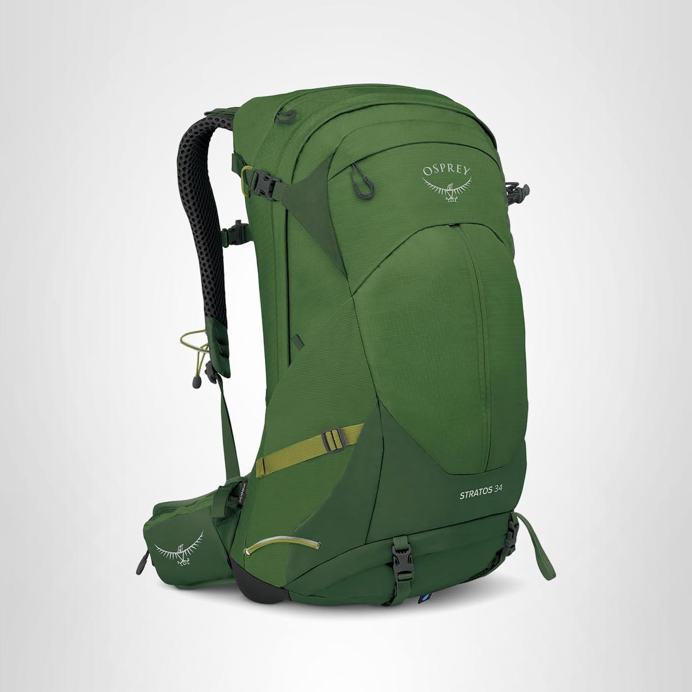 Osprey Stratos 44L Men’s Hiking Backpack – Lightweight Backpacking Pack with Waterproof Raincover – Camping Bag, Raven Black(Seaweed/Matcha Green)