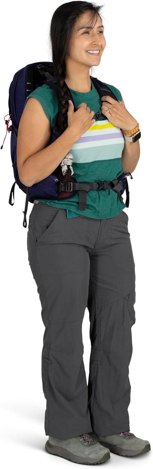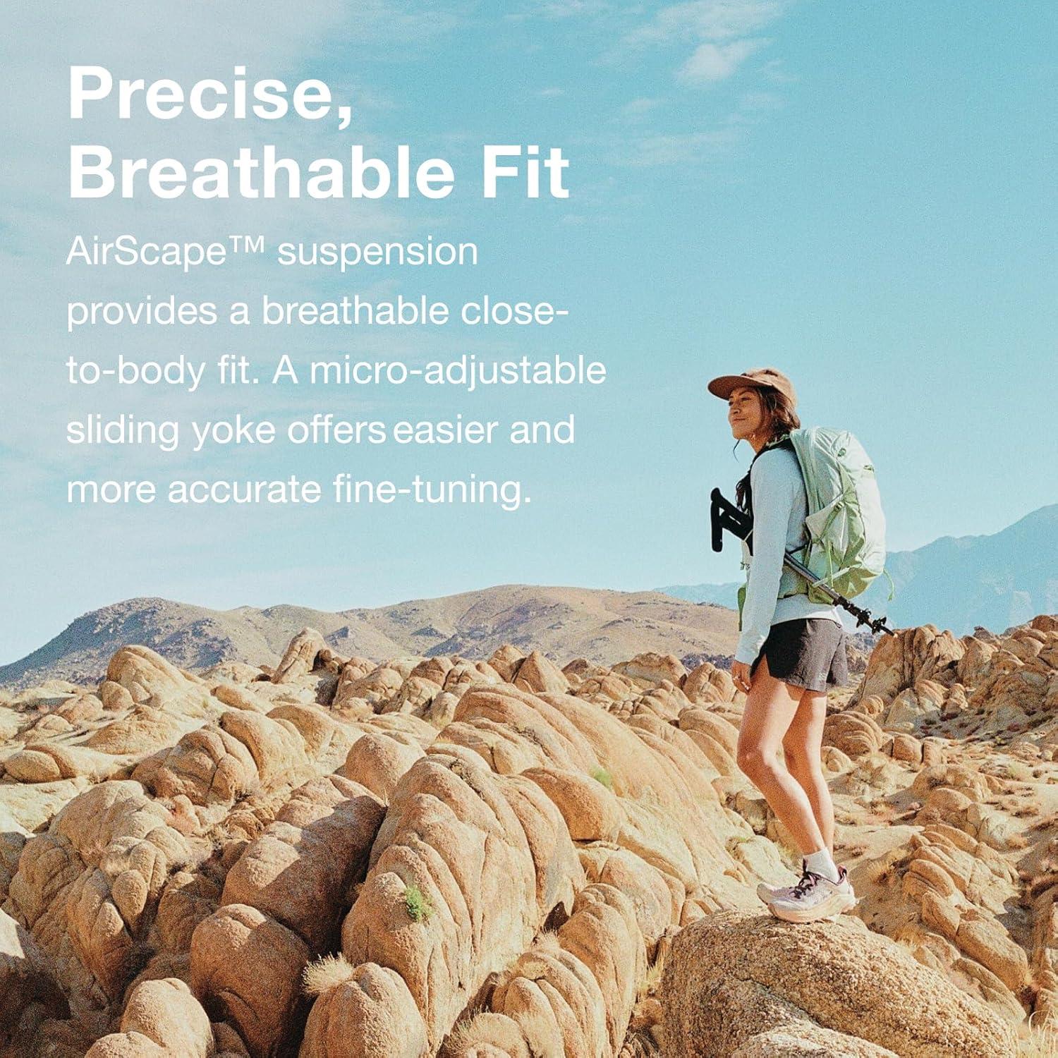 PRECISE & BREATHABLE FIT: Stay cool and supported with an AirScape backpanel that delivers a close-to-body, stable carry and improves airflow to reduce sweat while hiking or cycling. The adjustable sliding yoke and BioStretch hipbelt create a personalized women's fit, keeping the bag stable and comfortable during hikes, bikes, day trips, and other adventures.