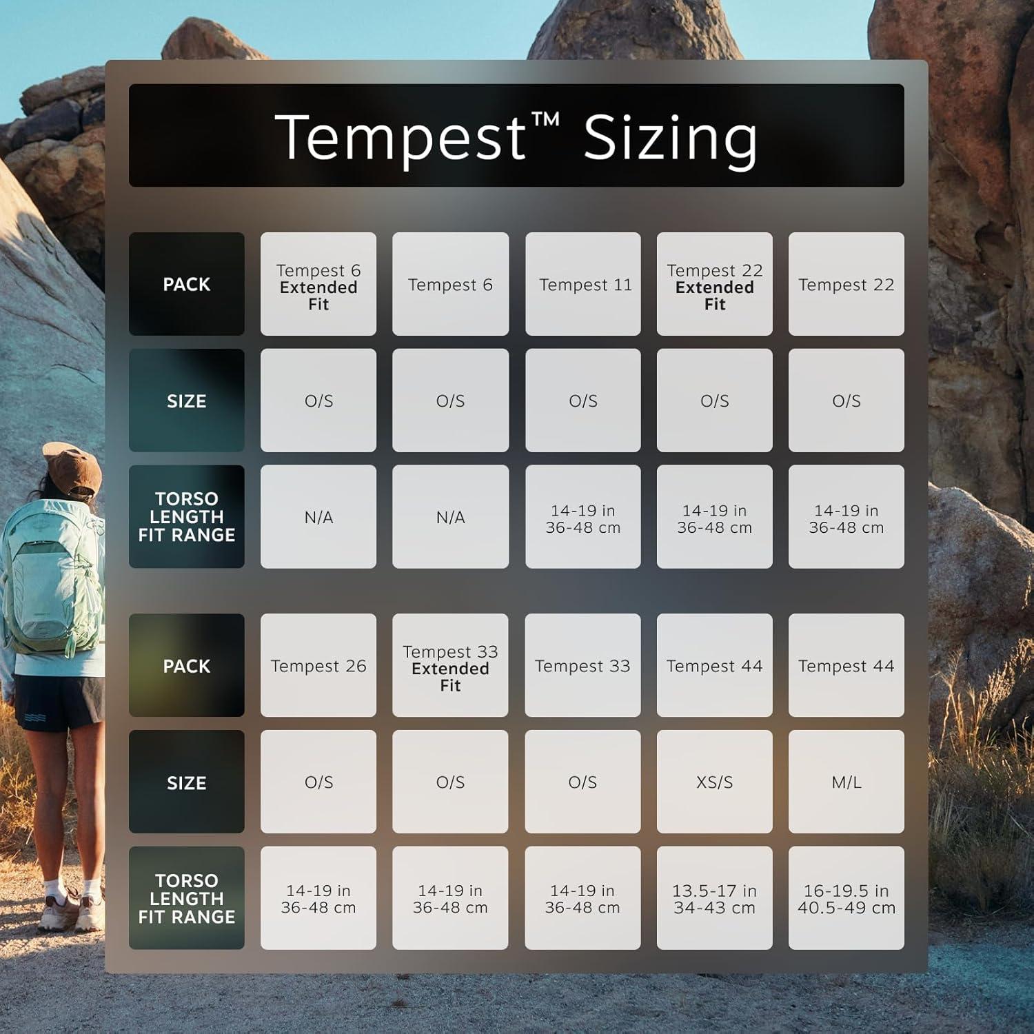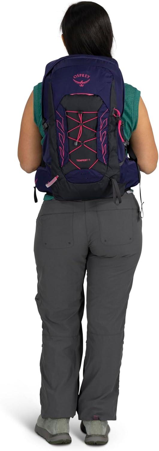 The Osprey Tempest™ 33L is a lightweight hiking backpack for women, built for long day hikes and short overnight camping adventures. Engineered for performance, it features an injection-molded AirScape™ backpanel and a continuous-wrap BioStretch harness with adjustable hipbelt for a stable, breathable, close-to-body fit. The top-loading design includes a spacious main compartment, fixed lid, hipbelt pockets, and stretch mesh side and front panels to keep hiking essentials organized. Hydration-compatible and made from 100% recycled, bluesign® APPROVED main body, bottom, and liner fabrics, this durable backpack offers lightweight comfort and reliable storage for every trail.