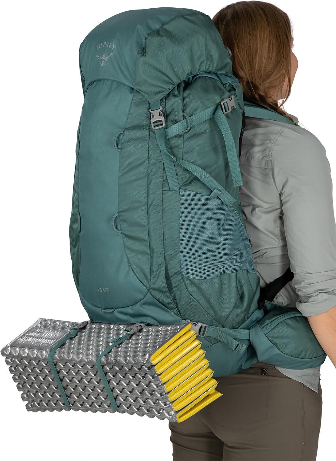 Inject some life into your backpacking carry with the Viva 65's exceptional fit and comfort, designed specifically for women, and a simple, clean design that experts and greenhorns alike can appreciate. The Viva 65 is a is a rucksack-style workhorse, ready to tackle overnight weekend to weeklong trips, even when your carry gets heavy. A floating toplid gives you a little more room for those last minute essentials and luxuries, the included raincover has you covered when the weather turns wet and streamlined attachment Its AirScape suspension provides a close-to-body, breathable, stable fit that bears the burden for you. Made with 100% recycled materials.